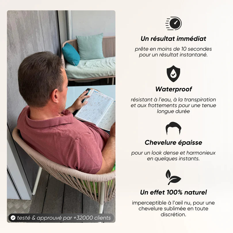 En moins de 10 secondes, votre calvitie disparaît. Effet immédiat, zéro attente.
