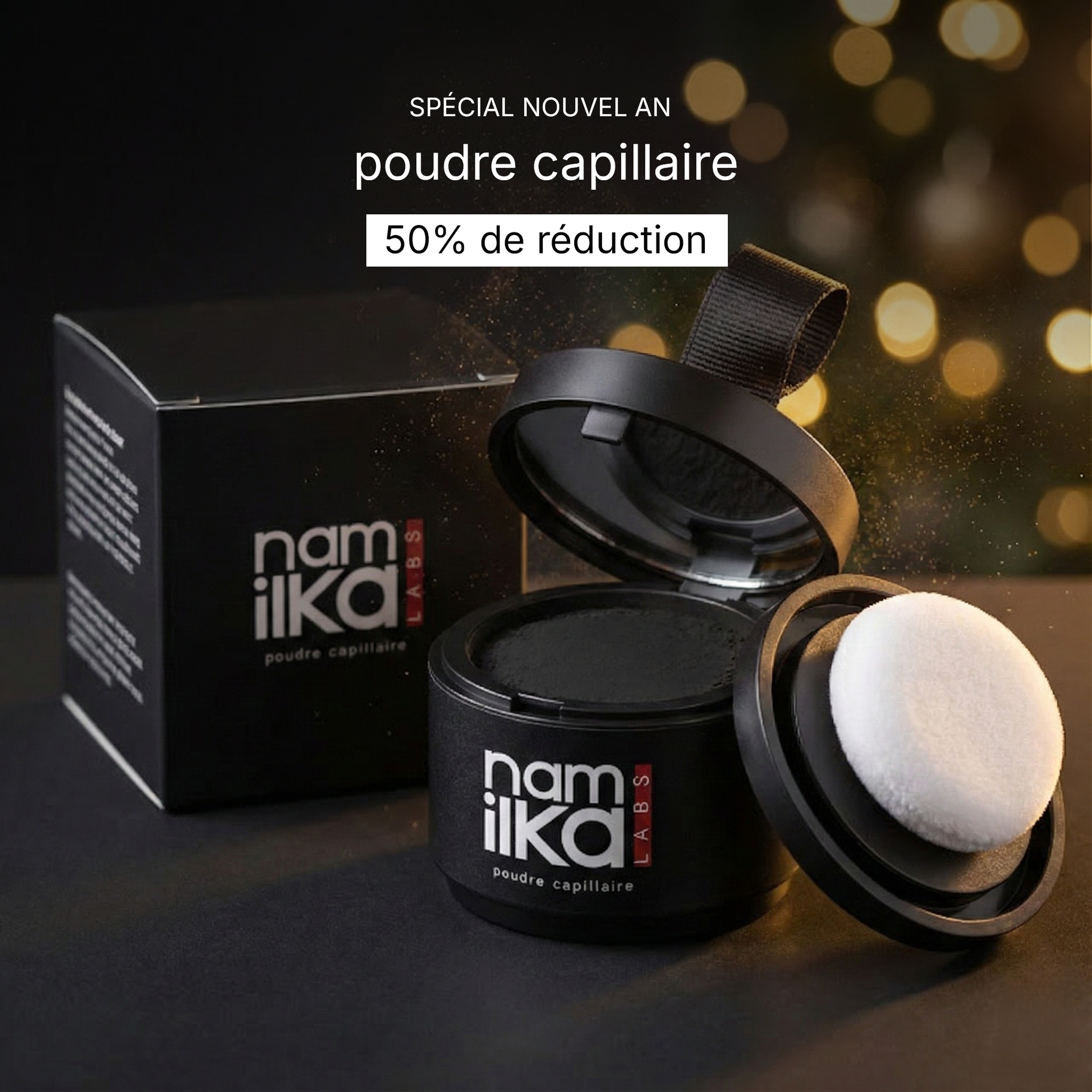 La poudre capillaire Namilka Labs dissimule en quelques secondes les zones clairsemées — pour une chevelure plus fournie et un aspect naturel.